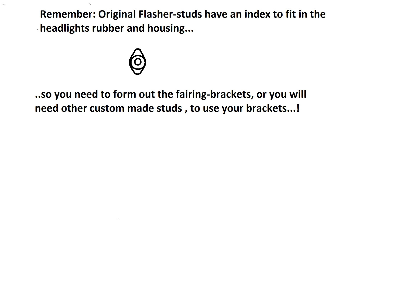 I had to cut out a little on both side of the fairing, to fit around the flascher studs,...and i use the "only-round made myself studs", with M10 threads throught the headlight / holders and brackets...