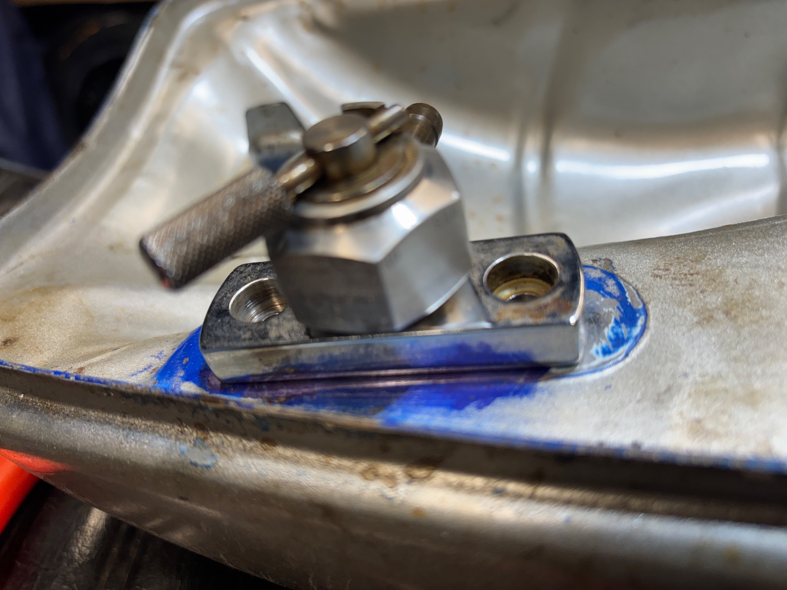 I was able to find a painter so I should be dropping off the bodywork in the next week so he can start prepping it for paint. Before doing so, I needed to open the stock fuel tap hole up slightly to fit the Pingel petcock I plan on using.