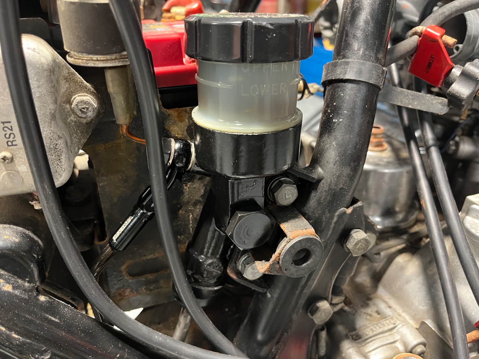 3-Rebuilt the rear brake system and finally got the rear master honed to hold DOT 5 (3 weeks ago) This took me 3 tries before I finally got it right. The trick is using a blind bearing puller to get a grip on the old piston, slather it in water soluble rubbing compound and spin it in a drill for about 2 minutes.