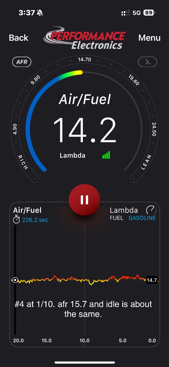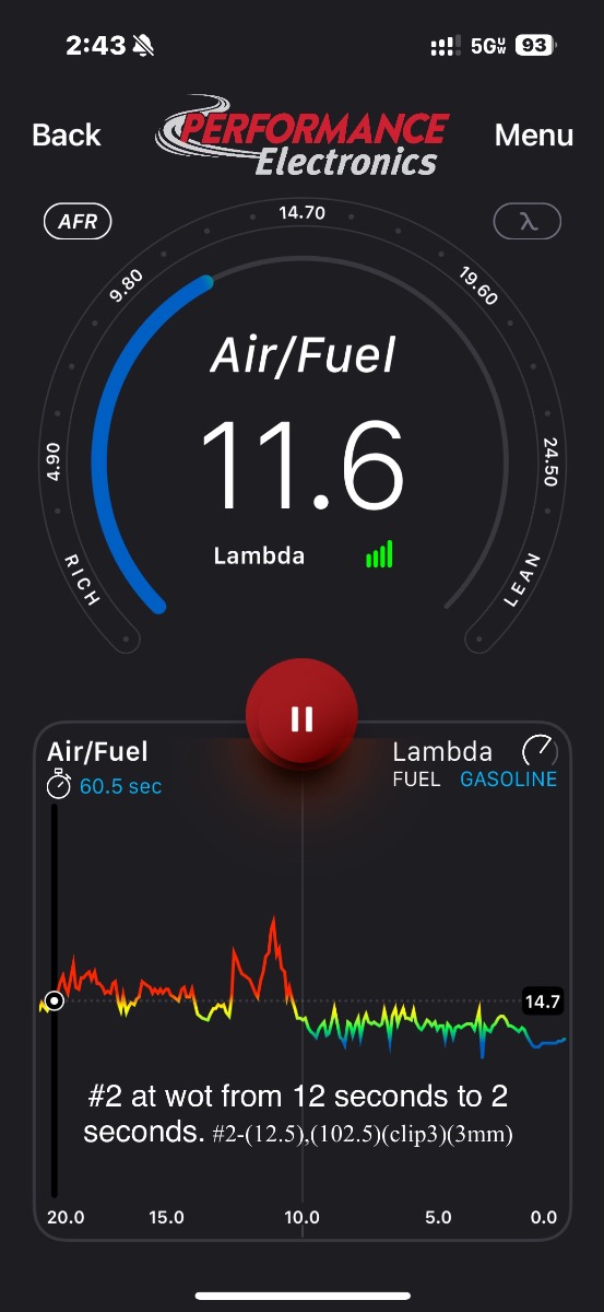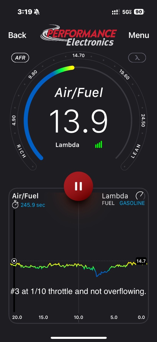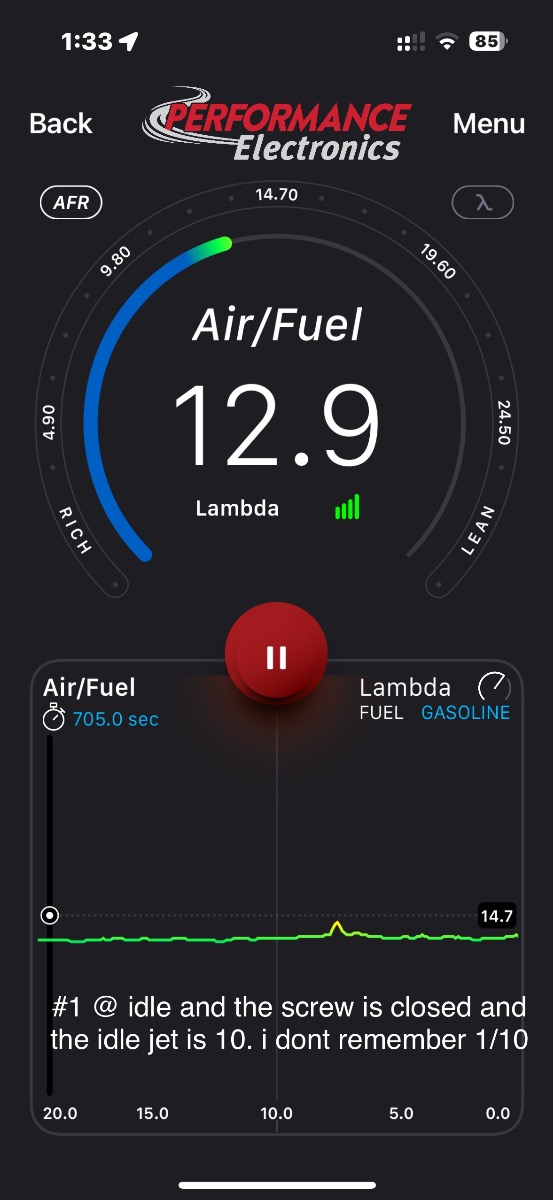 if the idle screw is less than 1 turn out or more than 2.25 out I will change the idle jet. It’s getting close! #3 needle valve stick sometimes and throws off afr but its also tuned the best when its not leaking. By the way, this is tuned on marine gas.