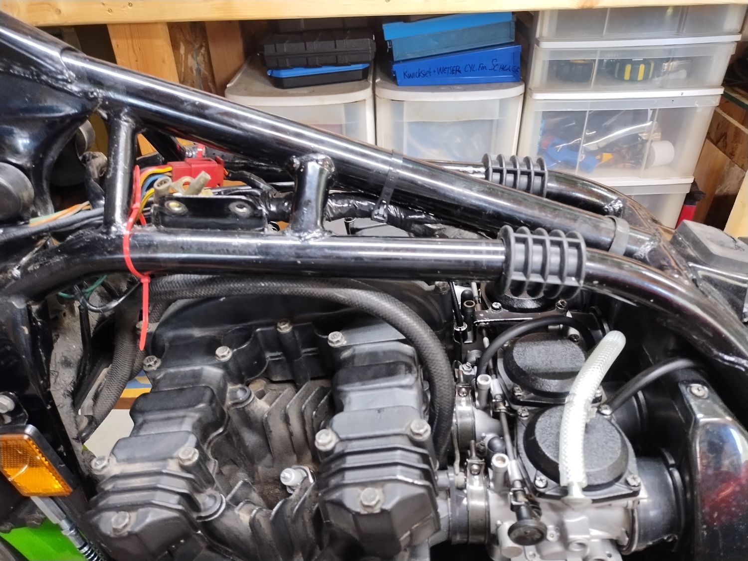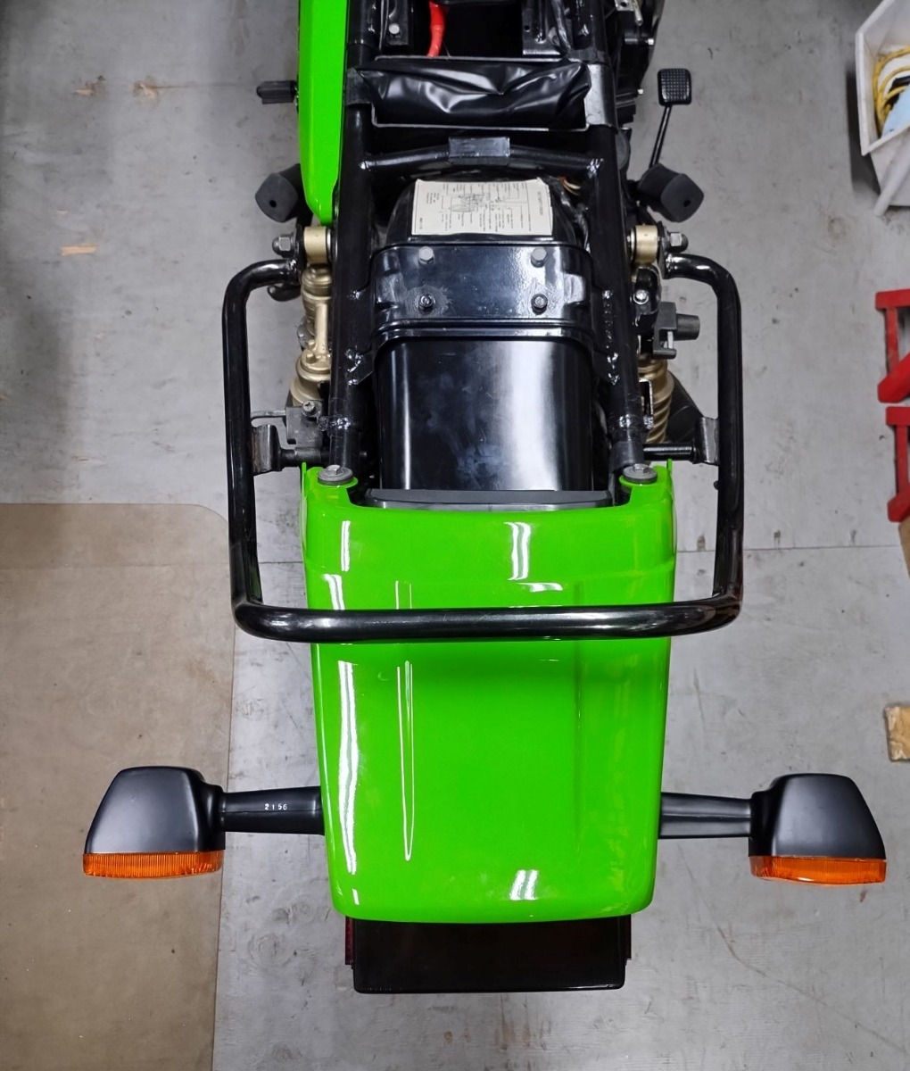 1978 KZ650 C2, 130K kms, Delkevic ex, EI, CVK32, PMC easy clutch, ATK fork brace, steering damper, braced swingarm, ZRX shocks, 18" Z1R front wheel.