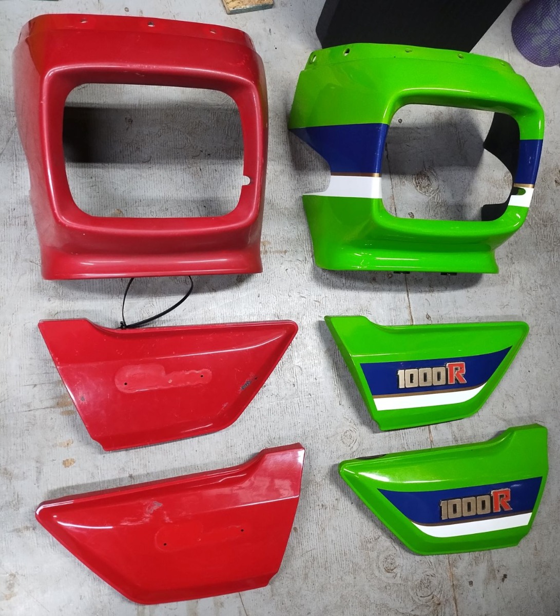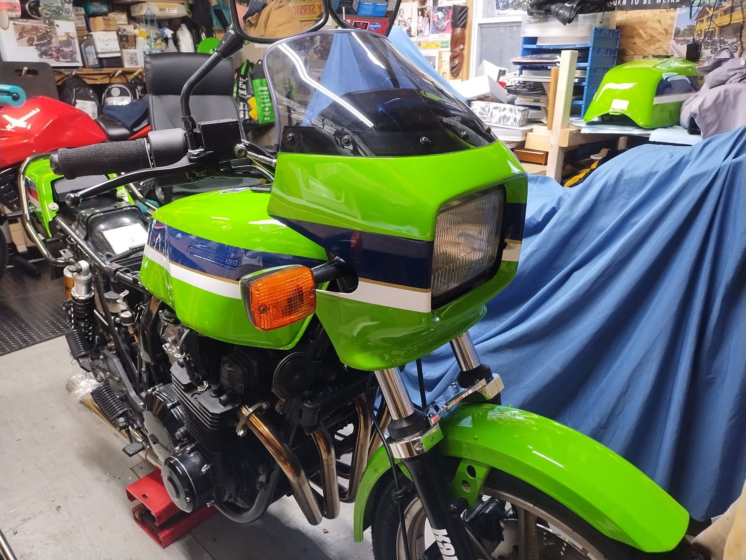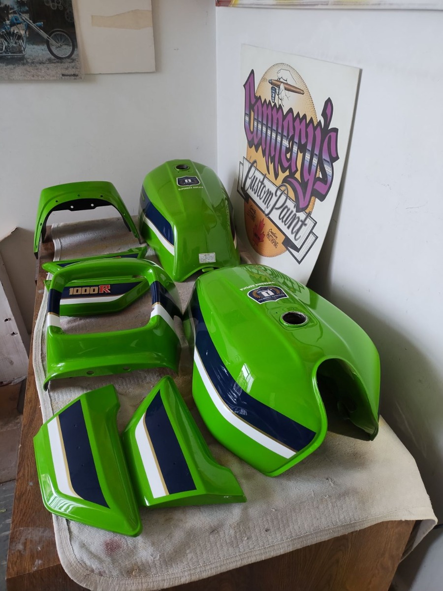 They, along with the GPz gas tank, will be getting painted green, and the stripes painted on.
