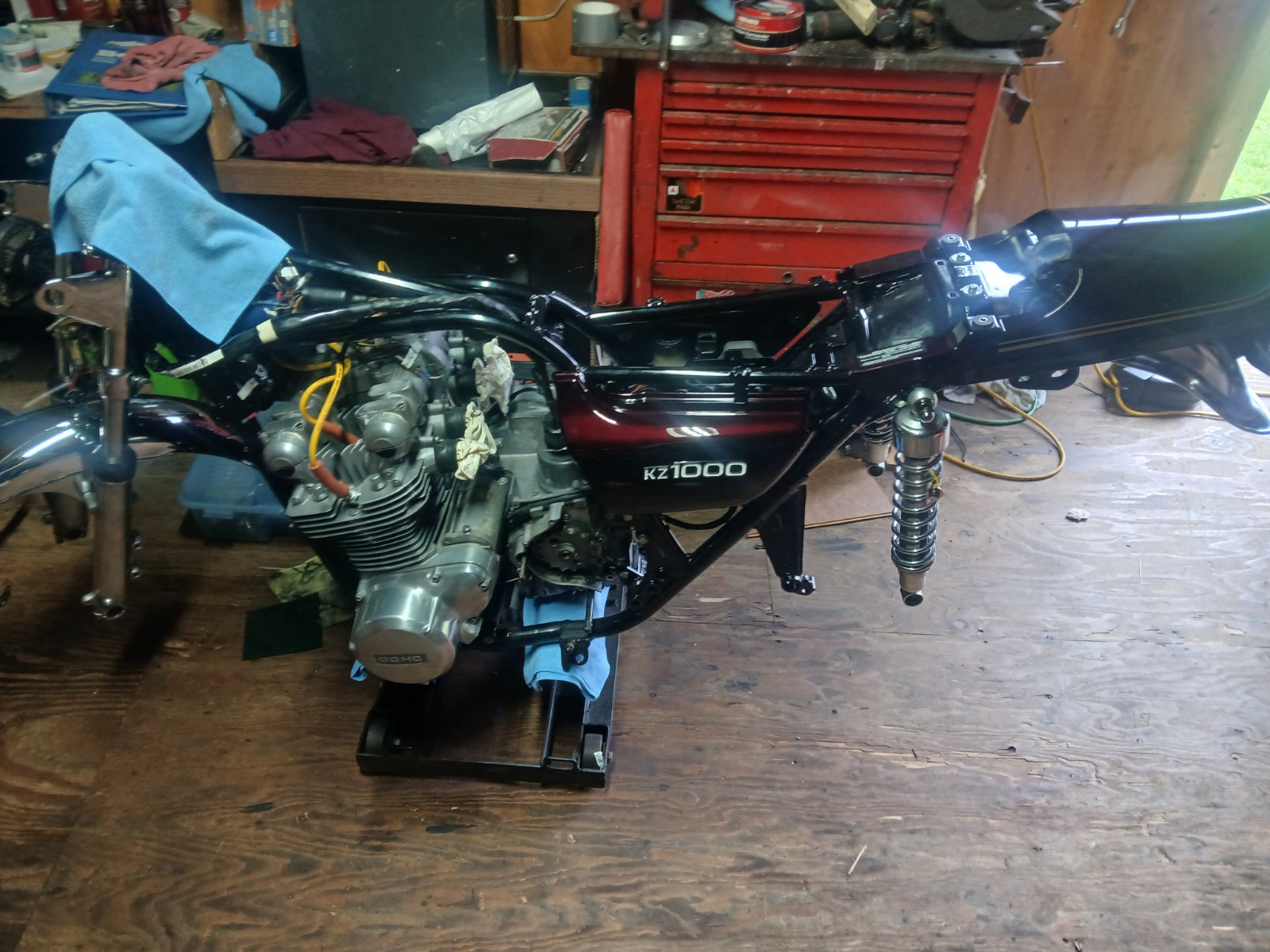 Here are some pics of the progress on the 77 1000a I found on this site a few months ago .I have reconditioned the lesters with paint and polish, wheel bearings, new sneakers, rebuilt the front forks,new calipers,brake lines. There's so much more but I'm not good at listing it all.