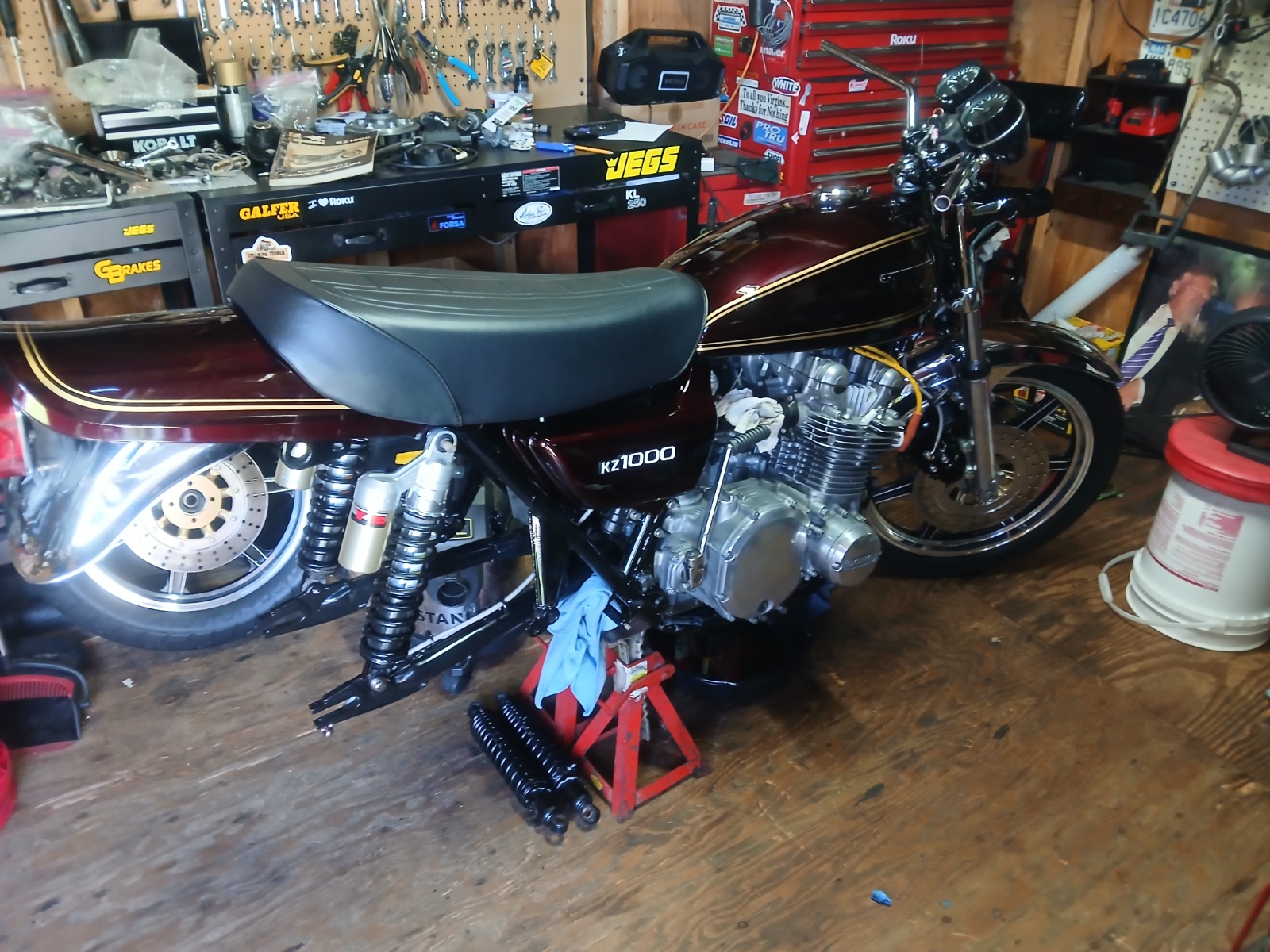 Here are some pics of the progress on the 77 1000a I found on this site a few months ago .I have reconditioned the lesters with paint and polish, wheel bearings, new sneakers, rebuilt the front forks,new calipers,brake lines. There's so much more but I'm not good at listing it all.