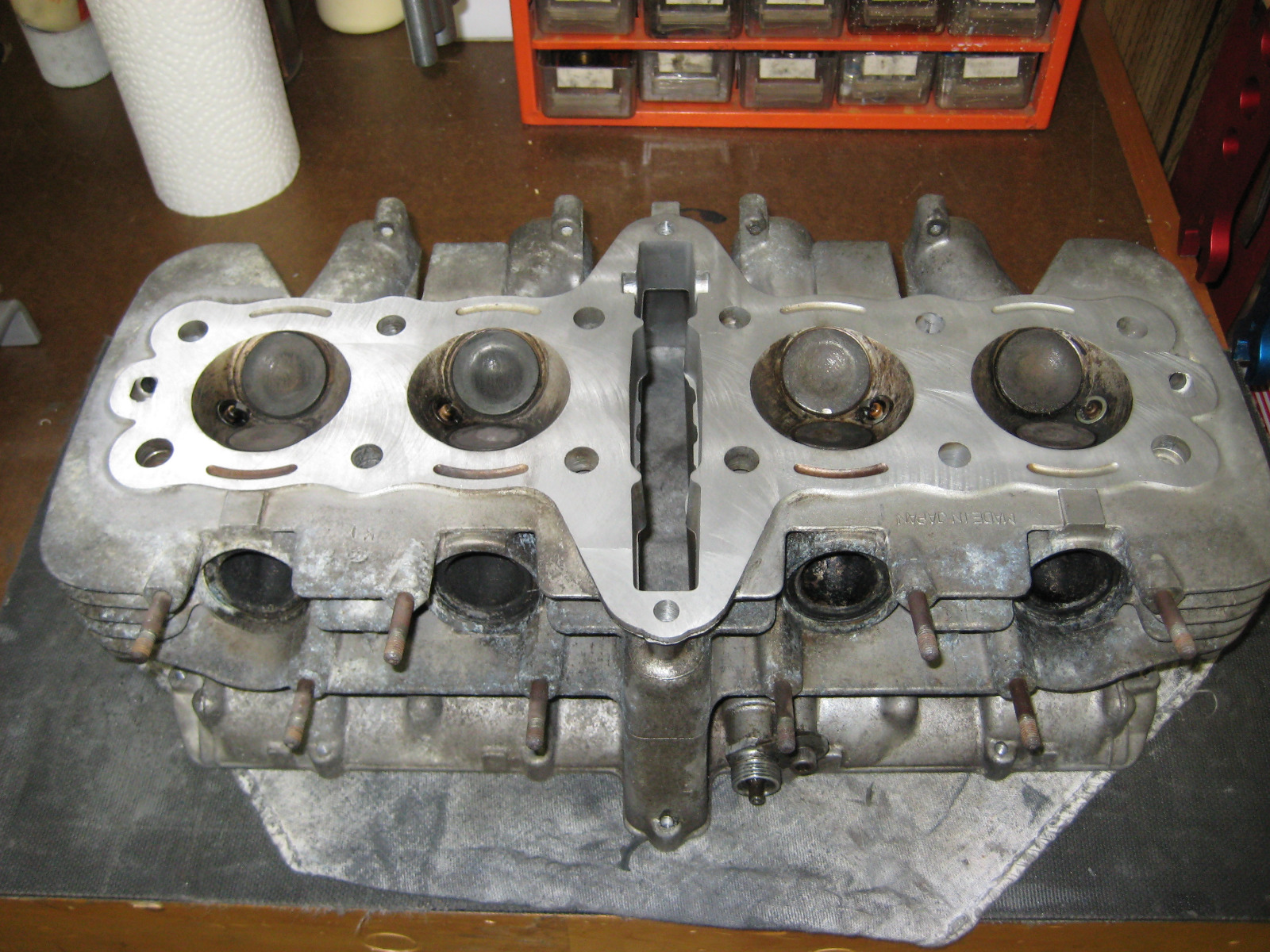 I could also use that 82 KZ650 CSR head but it was skimmed by .020" a lot of years ago, but that may raise compression too high (need to measure it) I would have to modify that head to use a center cam chain idler like APE sell for the J heads. The 82 head for the 650 does not have the "bath tub" chamber reliefs like the 750 head, it also has the rounded cooling fins and it has a tach drive port.