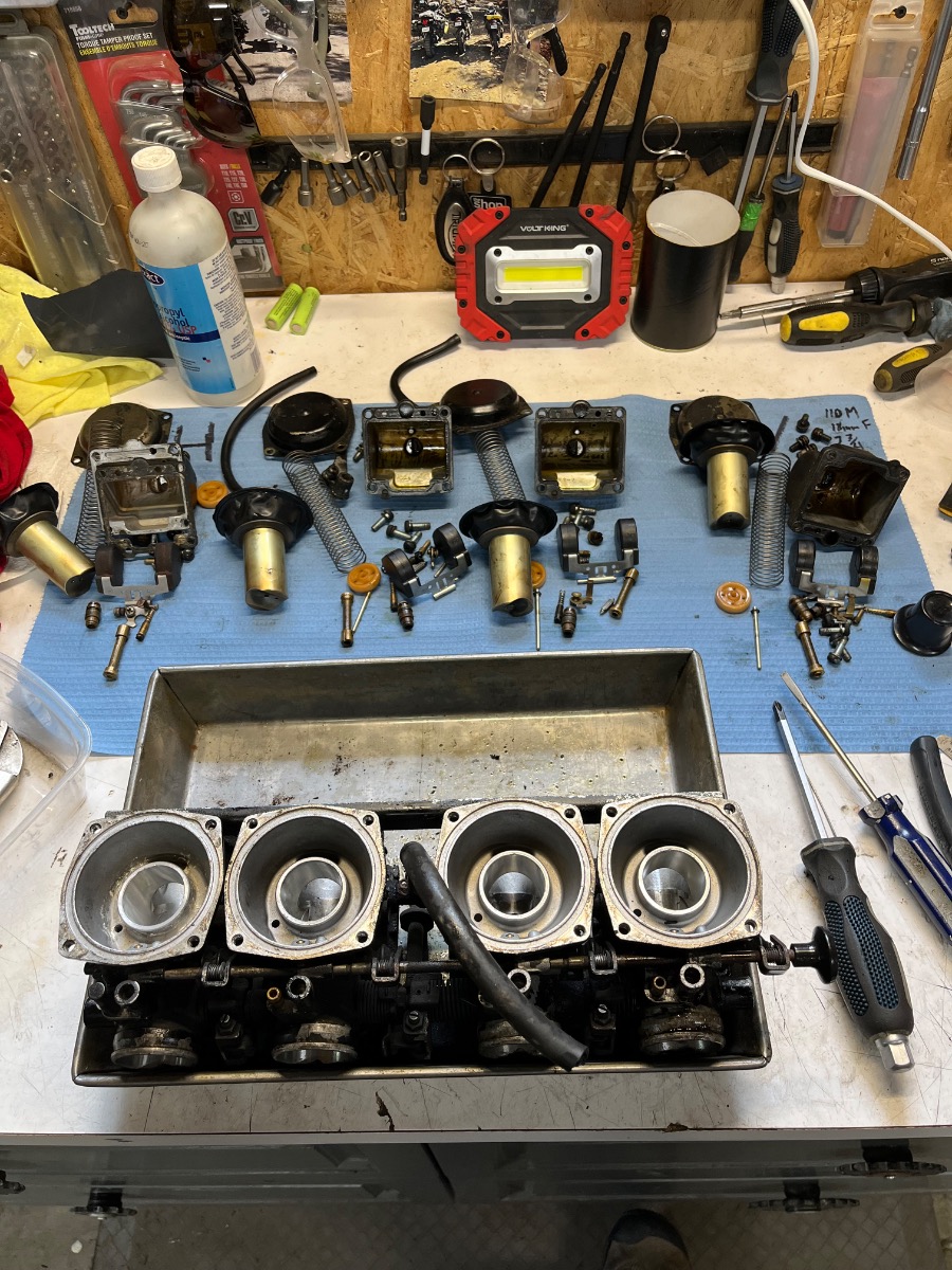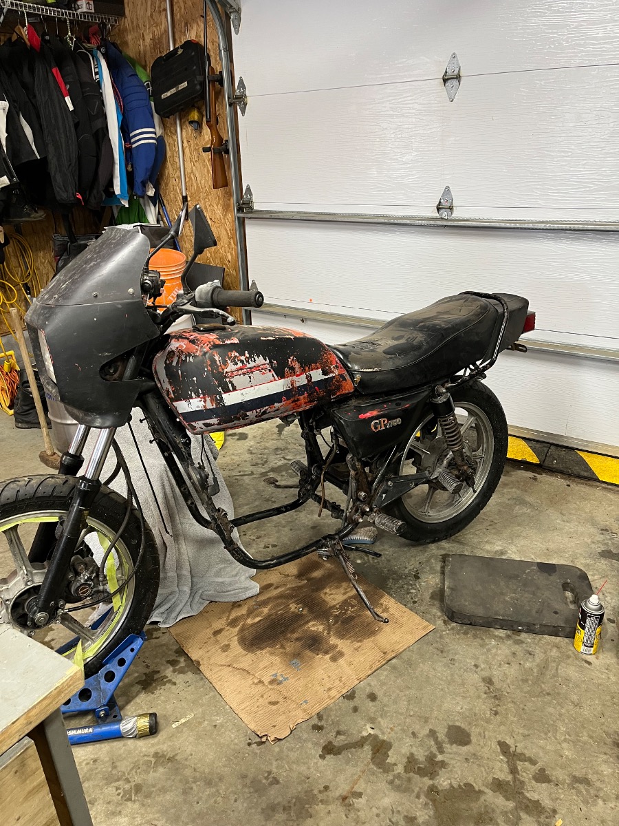 I did an inventory of the parts and the bike seemed to be 95% complete. I did some motor work last winter, carbs in the spring and finally in the fall of 2025 I got the bike running.