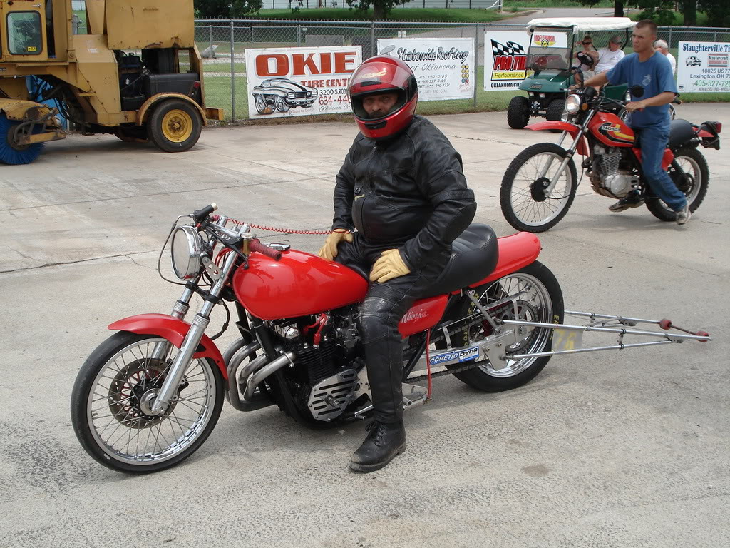 Green KZ was running 9's in 1/4. Had a big-block high comp. motor. The other is a Suzuki (yea I know) but just liked the picture. Sideways and smoking the tire...awesome.