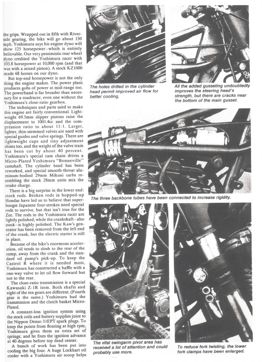 Here's a scanned copy of the Violence on the Racetrack: The Yoshimura 1000cc Z1 Racer article by Art Friedman that appeared in CYCLE GUIDE magazine in '76 or '77.