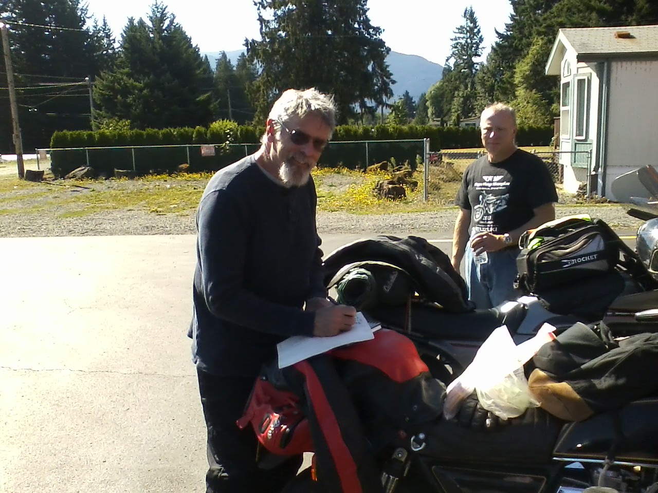 Motorhead (Darryl) really deserves to be acknowledged for his efforts in the NW leg. He's the one who went East (not sure how far east) to get it. He asked me to carry the flag into Washington. He's the one who continued north to make the hand off to Schuss, near Seattle.