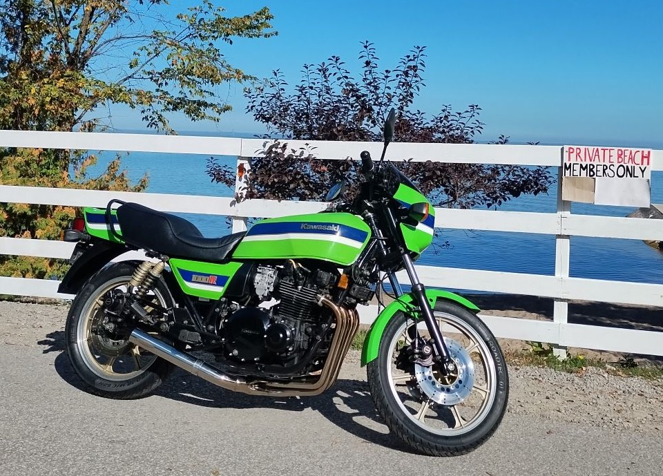 I bought this 1983 KZ1000R2 in May 2025, off a childhood friend. He bought her 15 years ago, and I've been trying to buy her ever since. My friend put her in storage, and did nothing with her, He buys and sells motorcycles all the time. Too many projects, This one I think he bought as an Investment. He did finally cave in this year, and sold it to me (for too much I think, buddy to buddy) considering the amount of work she was going to need as well.Having just worked on a friends 1978 KZ1000, I was ready to tackle this one, and besides, she's a rare model highly sought after.I went through her, replacing lots of rubber parts. Luckily most of the bike was there, including the air box, chain guard was sourced from California, front rotors from Australia, parts from the USA and UK.From eBay and the Kawasaki Dealer - New brakes: lines, pads, callipers rebuilt, MC rebuilt. New tires, bearings, forks rebuilt and cleaned. Some wiring fixed, the bodywork painted, and the bike cleaned (she was very dirty).In October I was able to take her for a few test rides. More maintenance will be done over the Winter.
