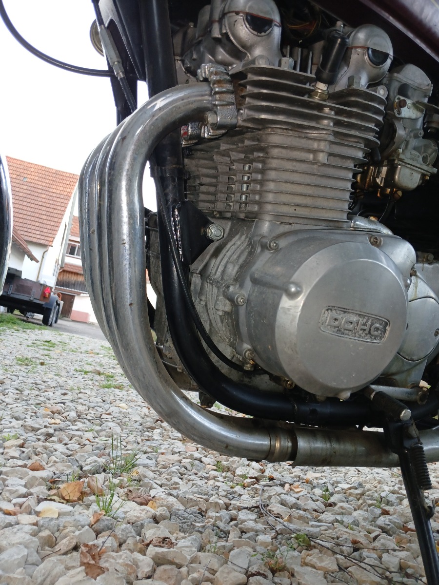 I was dealing with a medium amount of work and expense here: Overhauling the forks and brakes, drivetrain, tires, inner + outer engine-cleaning ,new paint and of course some new parts like intake rubbers on head, and between carbs and air cleaner, rear fender and a full hand of all the "little" hardware, we`re almost need on a restoring