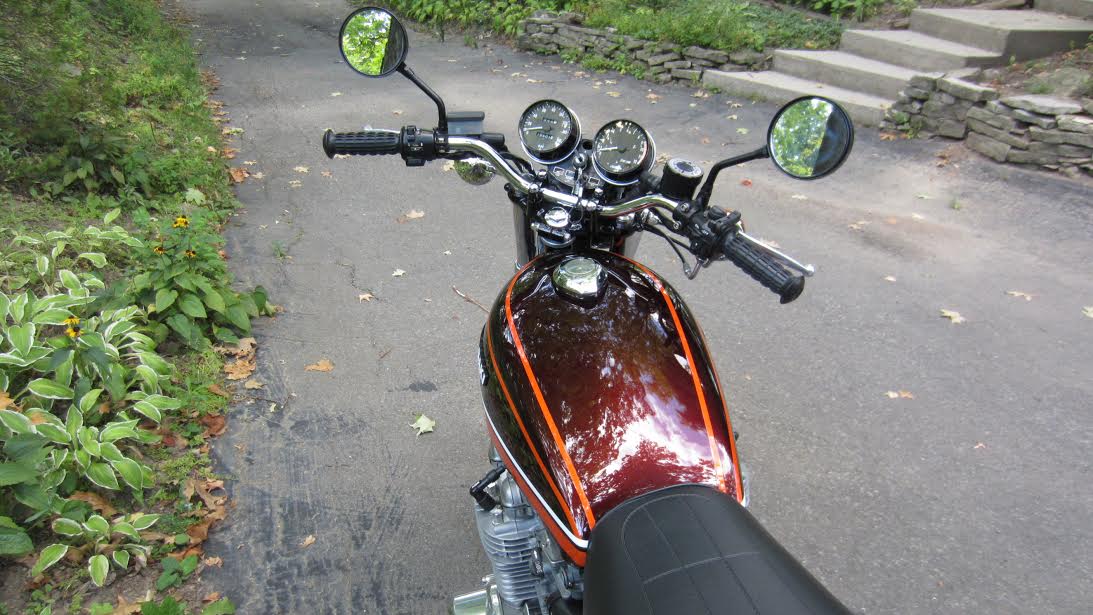 Beautiful bike Dave. This is my favorite of all the BOTM so far. That's because it's personal. Reminds me of my 74 that I purchased in the early 80's sold in the early 90's (one in my avatar). Purchased it while in college and it was completely stock, minus the LTD seat. First chance I got I threw away the 4-4 exhaust for a brand new Kerker 4-1. Then proceeded to do an awful rattle can paint job. I wish I would have known about buffing paint back to life and polishing cases back then and at least kept the 4-4 in storage, I could have brought back to its glory. I still think the 74 root beer brown with the orange strips is the nicest Z color scheme Kawasaki had for these bikes. Maybe followed by the 75's . Lovely bike Dave. Congratulations!