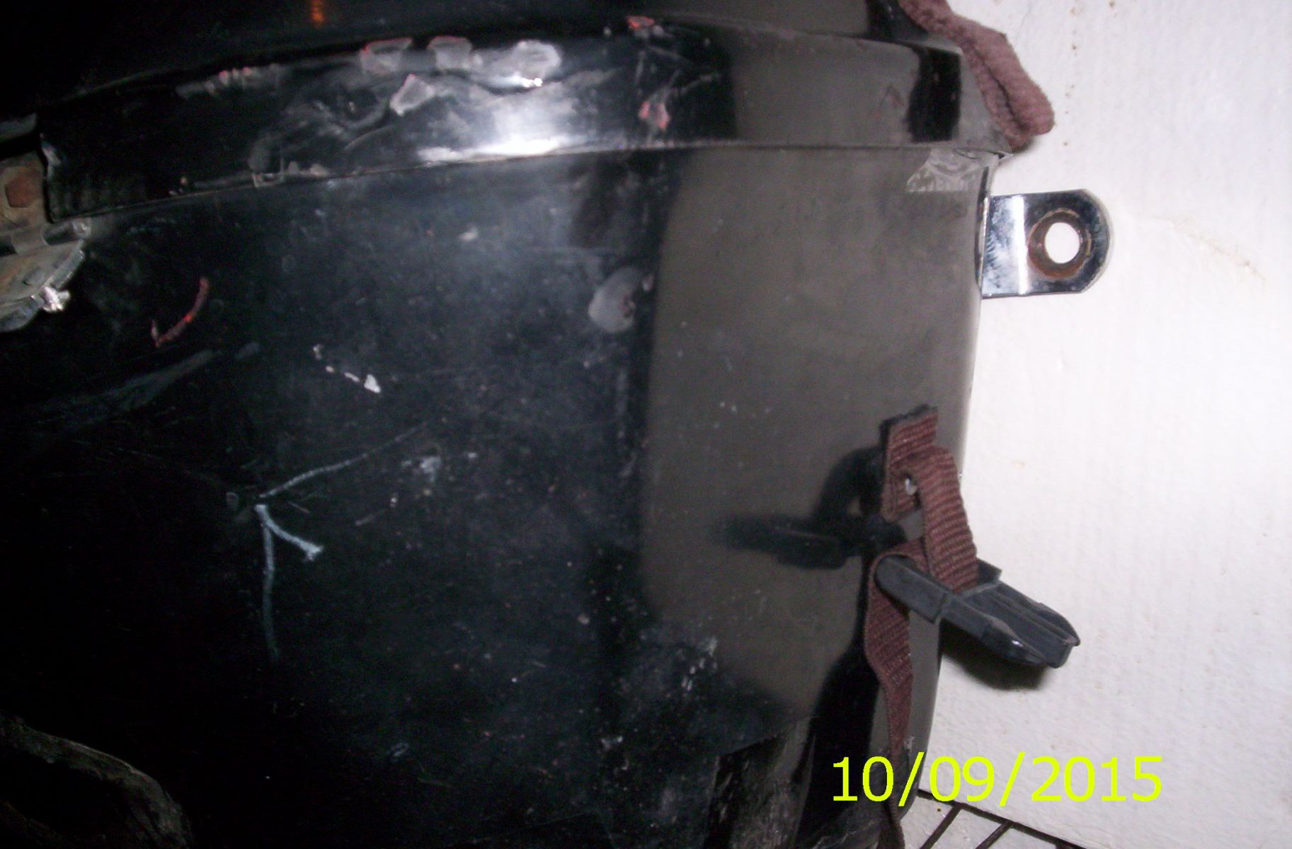 09 Oct 2015 19:03swest wrote: Being the stubbern SOB I am, I decided to try and repair my destroyed box. Riding with it bungie'd and being over the exhaust made it sag and separate more. I took them off the bike, separated the bad one from the guard, washed it and let it dry in the sun. 105 today. It was all twisted with cracks and gaps in different places. I placed it upside down on a table and used my heat gun to relax it back into shape. Using packing tape I was able to get it together. The plastic has a good memory.