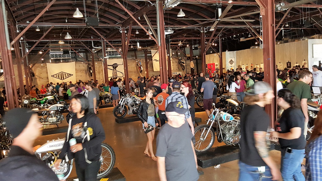 Food trucks were rolling in and there were probably already 50 or so bikes on the street parked. We walked in (a free show) and got a beer and started ogling the shiny chrome and cool customs: