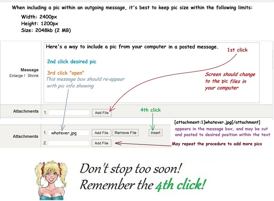 If you have the program called "Paint" on your computer you can use that to easily resize pics to a smaller size. Just open the pic using Paint, click on Resize, and replace the "100" next to "Horizontal" with a smaller number. The "100" next to "Vertical" will automatically change. Ed