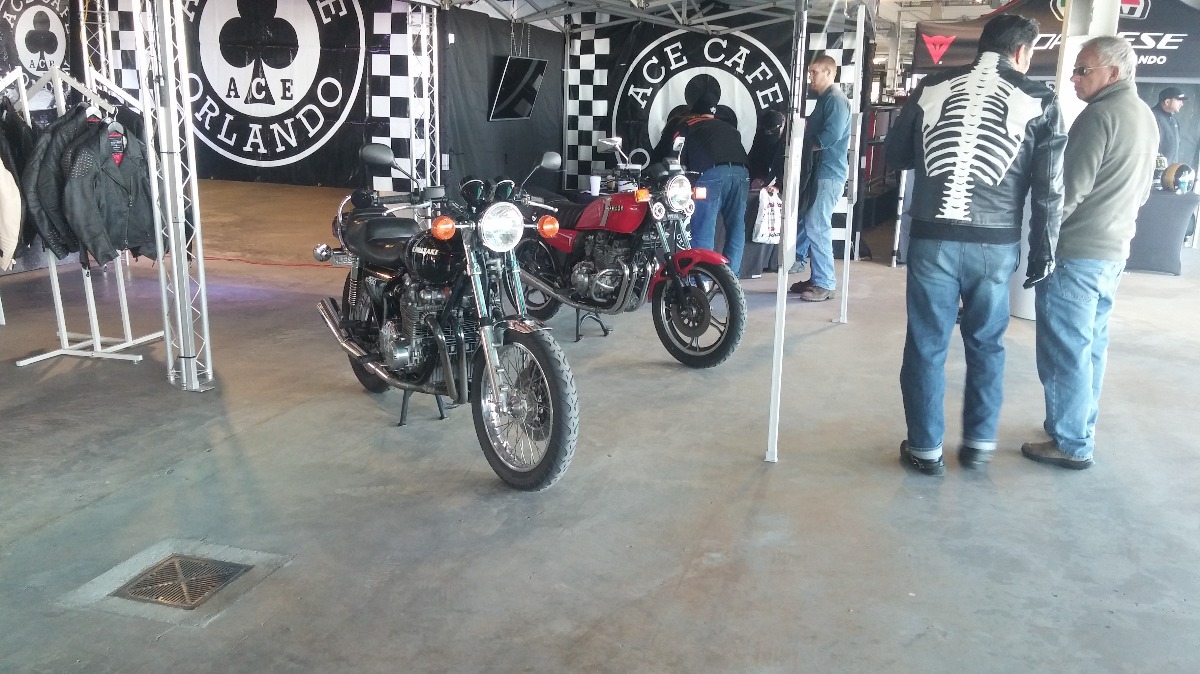 ACE Cafe asked our cafe riding club for cafe, vintage or British retro bikes to display at their booth during the TT races today. I took my two bikes over and got free passes for me and my son. Having a nice time checking out all the bikes.