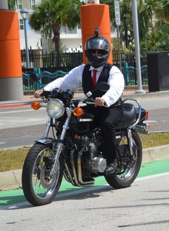 Awesome 900! Ive always wanted a black bike, AND a KZ900. That must have been during the Gentleman's RIde? Here is me a few weeks ago during the ride on my other bike...