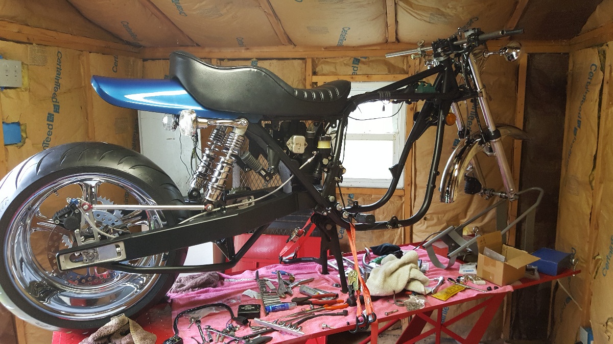 Ive got some of the front end on it. Waiting for my wheel from chrome guys. 5 spoke to match the rear one. Its from a gpz305.