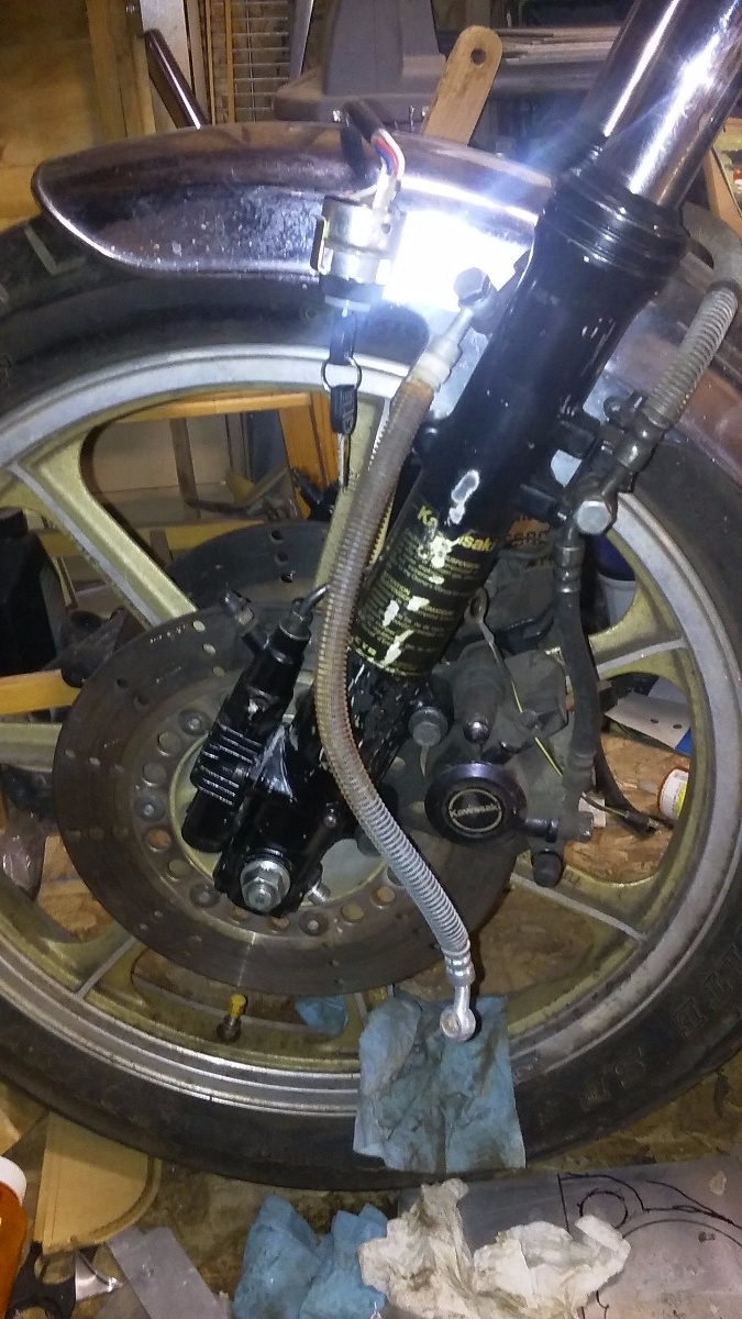 The long term project has been this KZ650/750GPz hybrid It has a '83 750GPz front end and 80- wheels. So far....