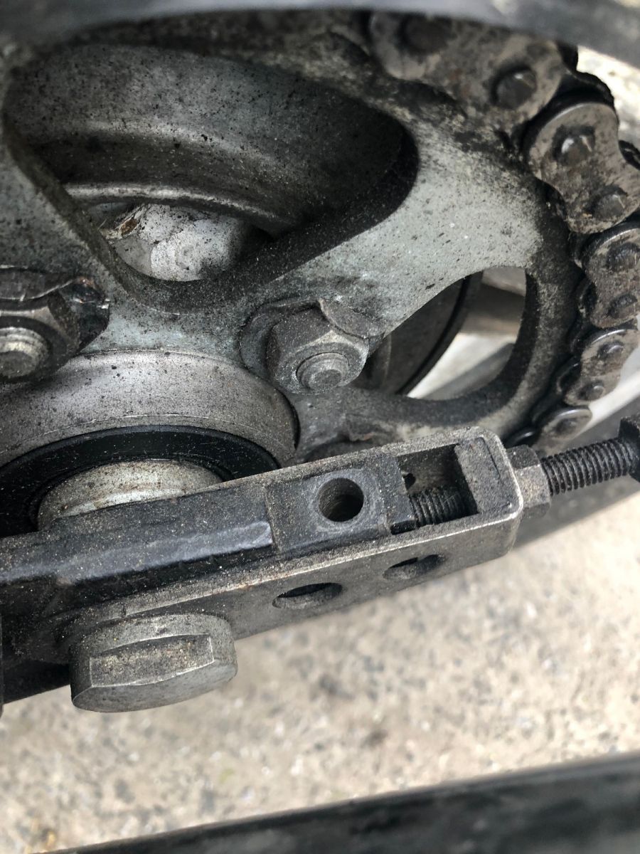 Took my bike out today and noticed something I havent before. First pic is the left hand side, second pic is the right hand side. What bolt is that missing in the chain adjuster, whats its called, where can I get one, and how serious is it that its missing?