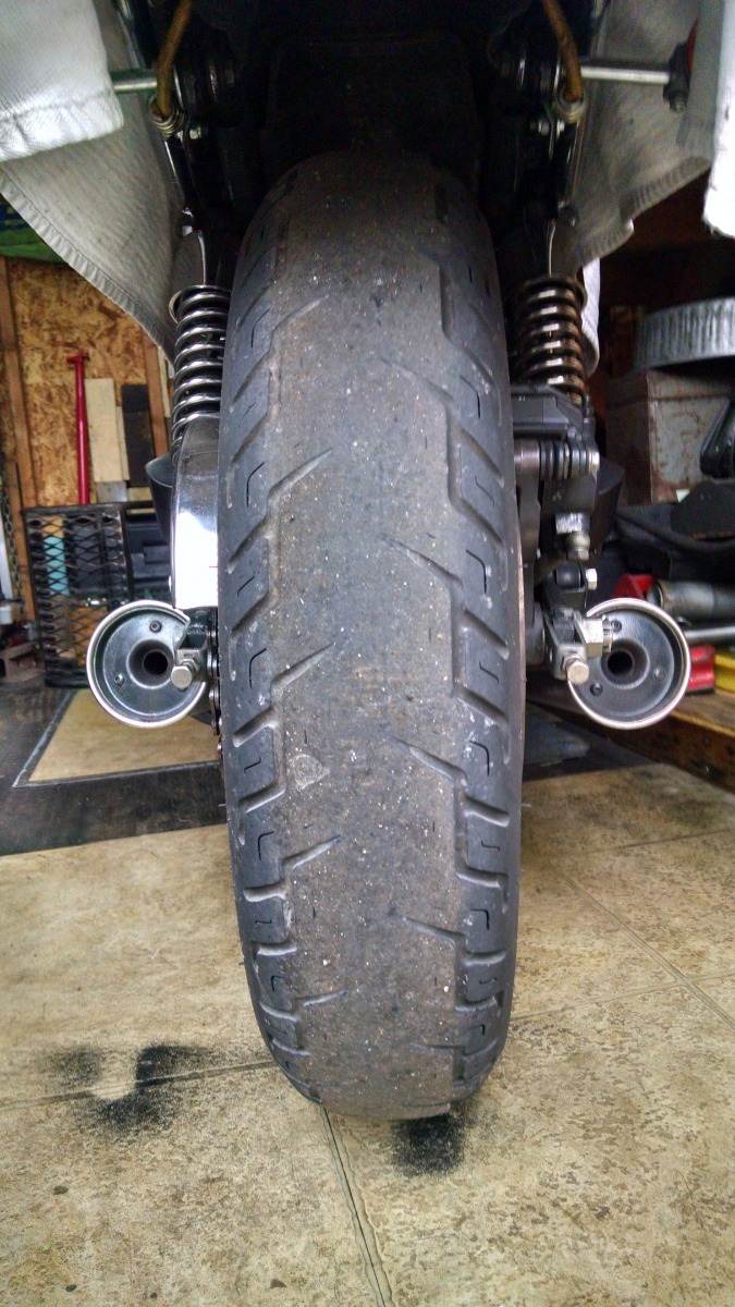 They do seem to be holding up well, because I have almost 5K miles on the rear now, and it only appears to have minimal wear. I do not purposely smoke them off, unlike some that enjoy propping the front wheel against a solid object. then smoking it until it pops, but I occasionally might light it up briefly just to feel that power come to life, only for a few seconds. :lol: This pic was last week at QT.