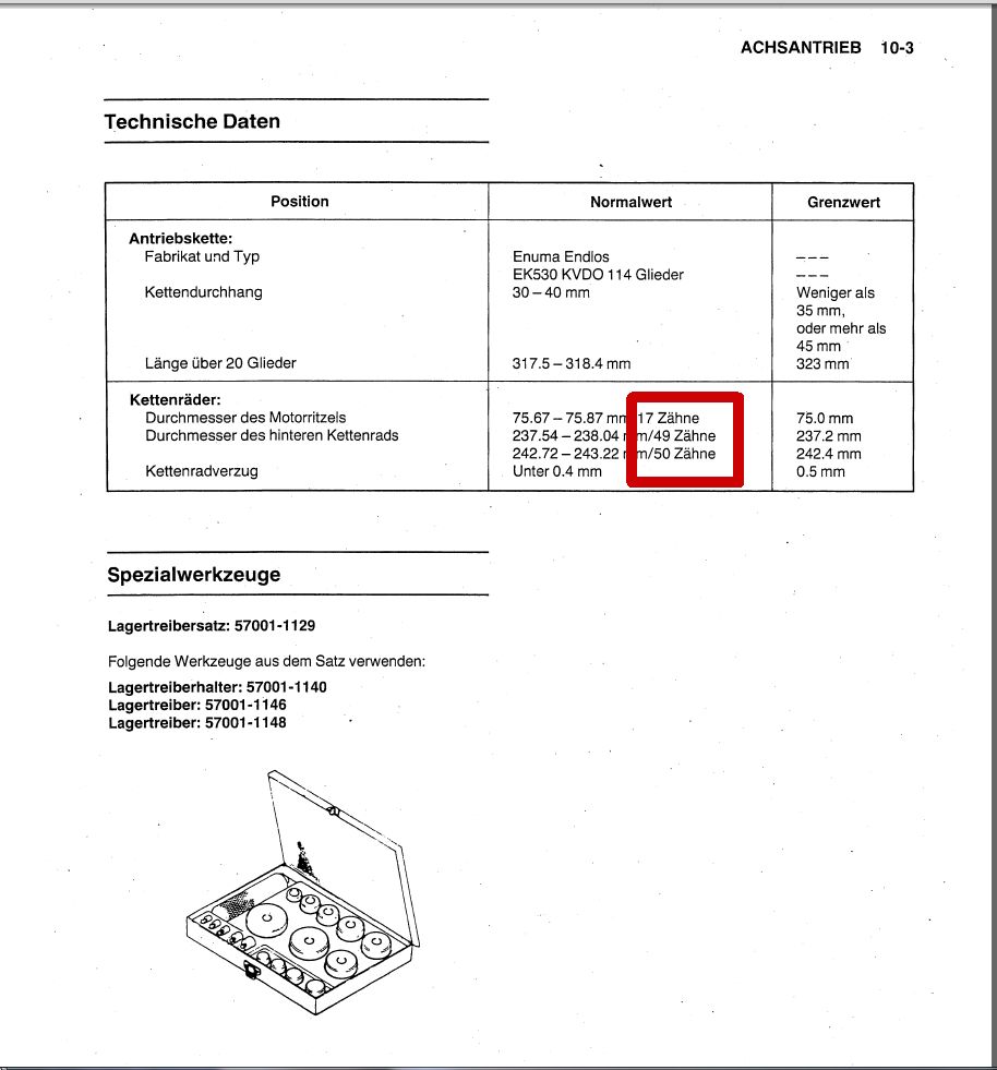 GPZ900R front/rear sprockets 17/49(50) = 2,88 to 1