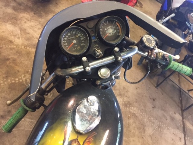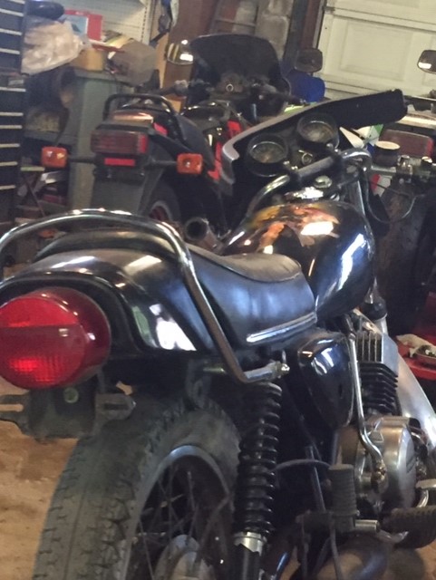 Well my friends had this bike in his garage owned it since high school . He hasnt ridden it since 1984 when he bought his gpz 1100 . Ive been trying to get it for years and he finally gave in and sold it to me . He kept the tank topped off all these years and kicked it over a few times a year all these years . I turned the throttle and it snapped back just like it had been ridden yesterday so I think it will run without to much fuss . Anyway heres the pics . Its a 76 kh 400.