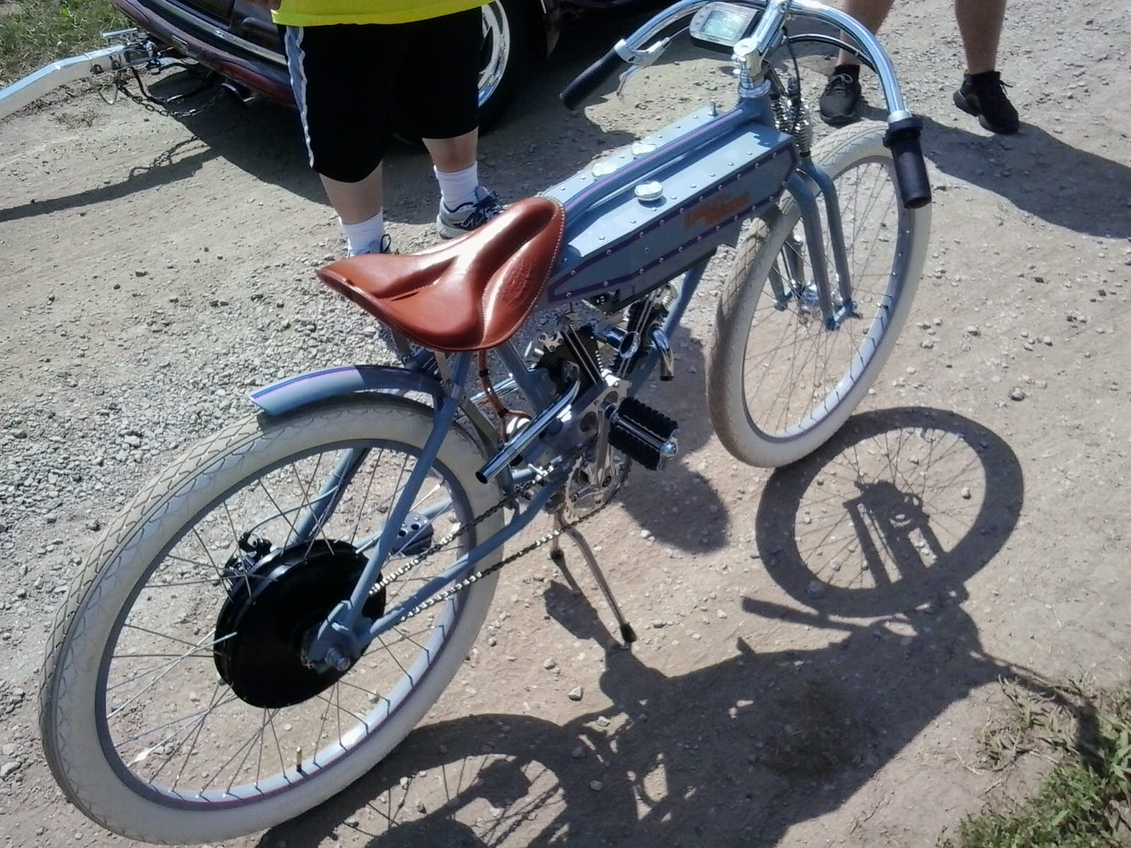 Here is a battery powered bike waiting in line to do a couple laps before the (Springfield Mile) 9-4-16