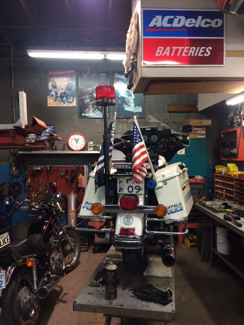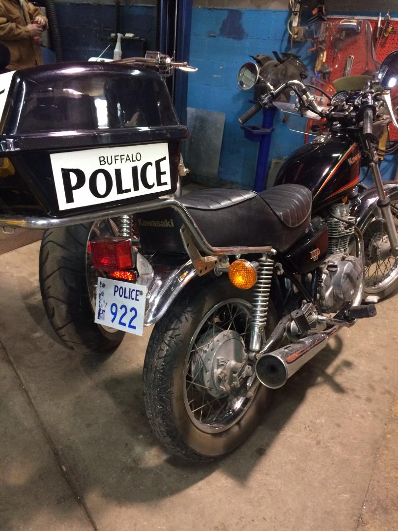 Yes, a Kawasaki Police Bike. From Buffalo, New York's police department. My friends shop, Car / Auto / Motorcycles, he has the contract to service the Police Harleys. inside friends. We just bought this old 88-87? Kawasaki 305 CSR. It has been sitting for years down at the main garage. We picked it up to check. Just so happens a different spark plug was put in with a modified plug, longer!!!! it was right before TDC and would not rotate the engine! Mysteriously??? :laugh: Told the department it was seized! It auctioned off for $110 dollars. And guess who bought it??? 2400 miles! Hope Karma don't visit!! But actually it did not run, from sitting. Pretty funny actually Nice to have connections!