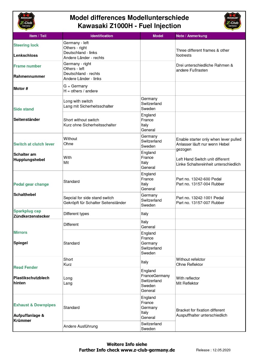 First my hat is off to you for taking on what IMO will be somewhat of a harder than one thinks project. Second I have some info on the 650s but not much of the other bikes. The KZ650s were offered in the US from 1977 through 1983, not 1978 - 1981 as your list shows. I have included some attachments with a table of the 650s frame and engine numbers I could find and make sense of. Keep in mind the F2, F3 and F4 models were not offered in US.