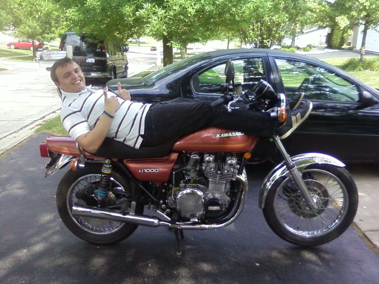 Wow, a baby GPZ! Funny seeing shorts and barefoot on a motorcycle, I remember doing the same damn thing. It sure seems like stupid behavior 50 years later.