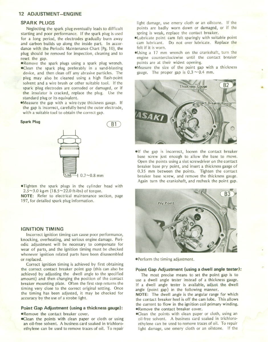 So ideally on the Kz, when the knob is set to zero, the strobe should flash when the F mark is lined up (at idle). When the knob is set to double the Kz's timing spec., the flash should happen when the T (TDC) mark lines up.