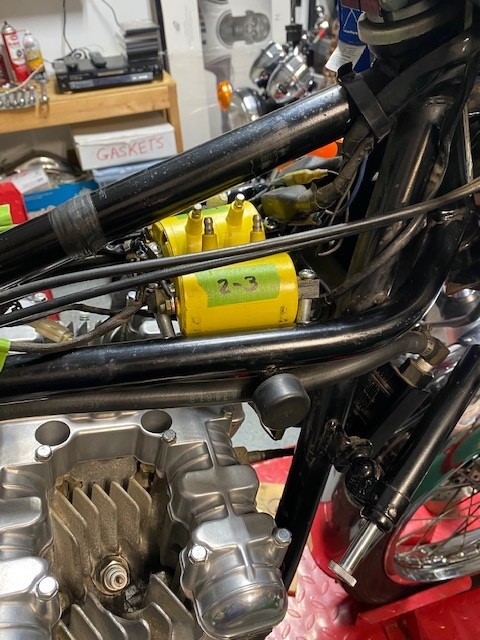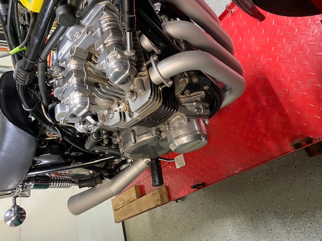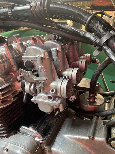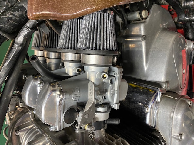 Thanks, big time to Mikaw for rebuilding the 28 mm Mikuni "Frankenstein" pumpers. Also since bike came with Magneto Dizzy I have been converting back to Dyna electronic ignition and Accel coils.