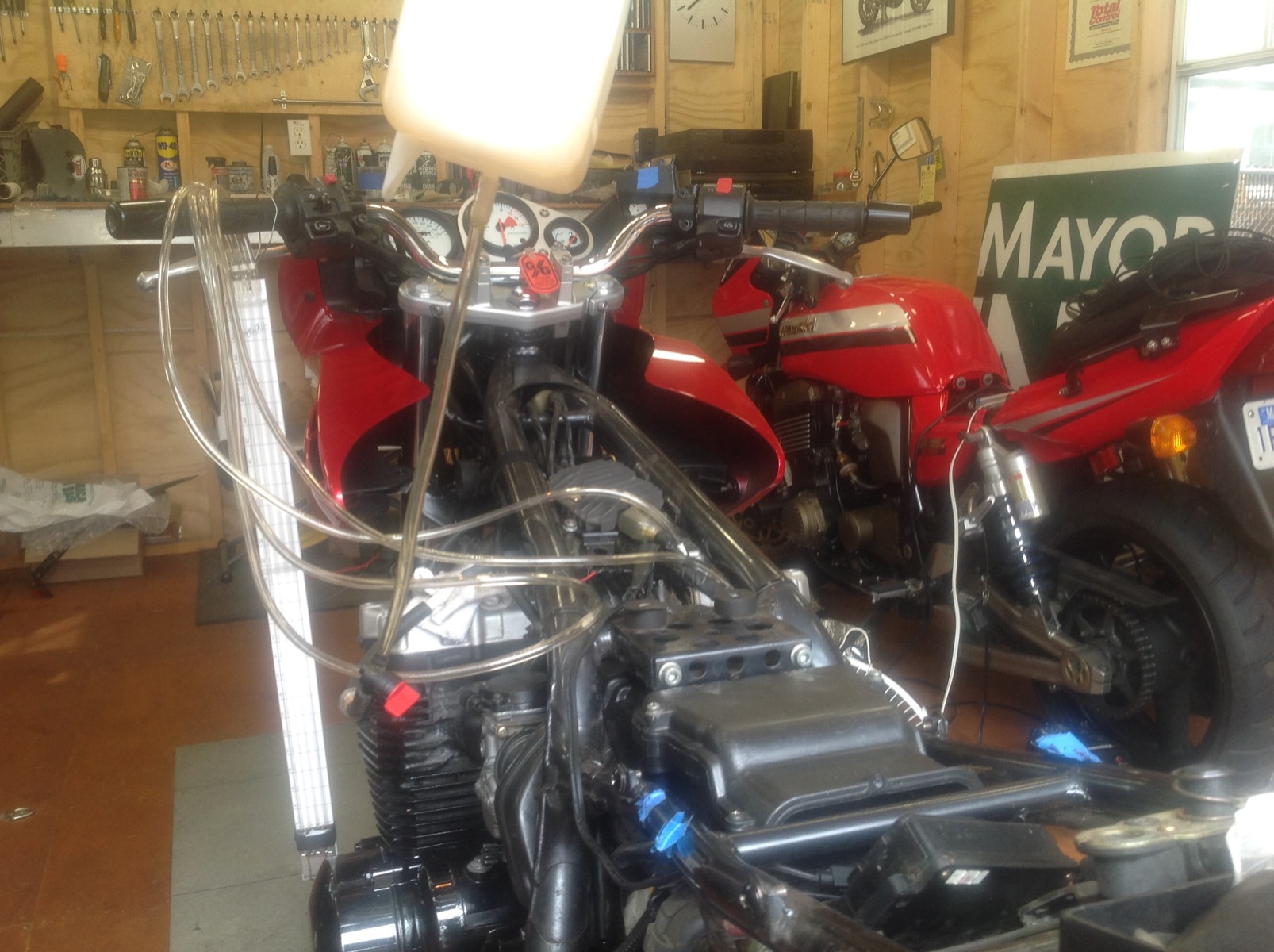 Heres the 7 frame. The top rails may be too wide to accept a gpz tank. And a pic showing off my new carb holders.