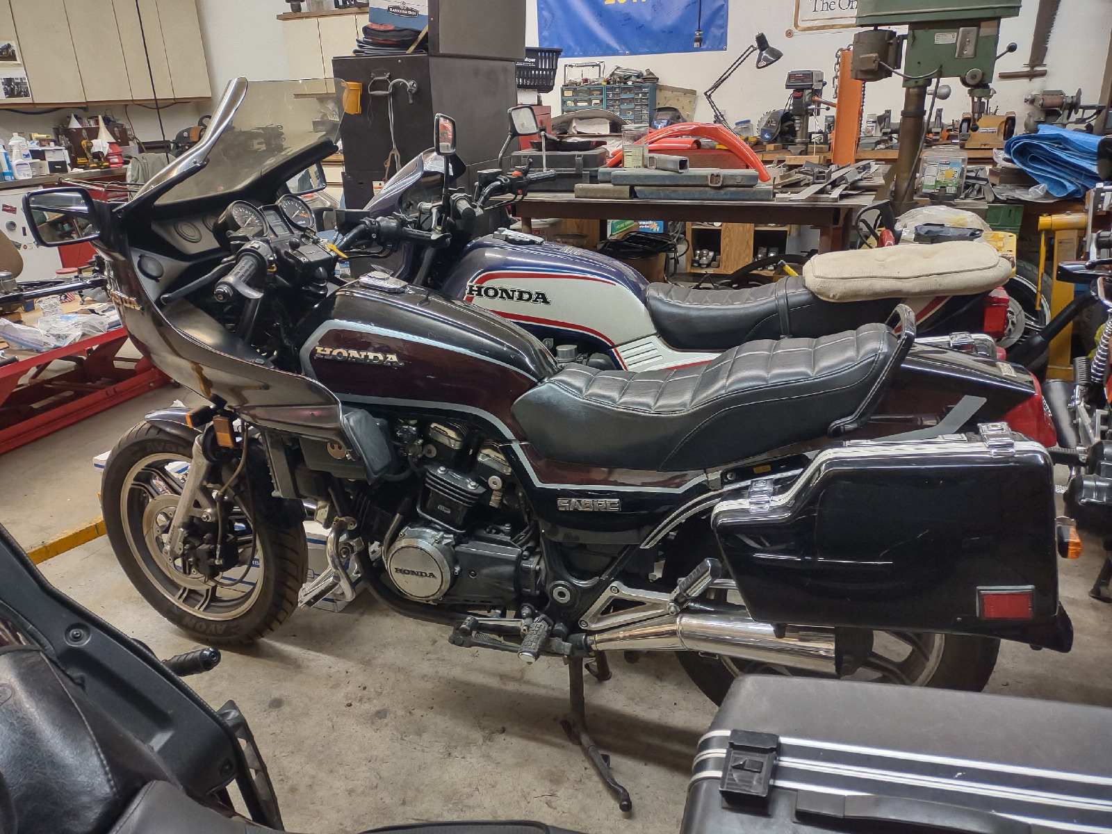 Let's see, we have to install the new starter solenoid in the 84' Honda Sabre 700S. Figure out if it was a bad fuel petcock that flooded the crankcase with gas on Glen's 81' Suzuki GS 1100E. Pull the carbs off the 82' Honda CB 900F to change jets for the new exhaust. Waiting for the head and cylinders to come back from the machine shop for the 74' Honda CB 550 K0. Fully disassemble the 83' Honda CB 1100F and resurrect it. And finish assembling the 78' Kawasaki KL 250 for the boy.