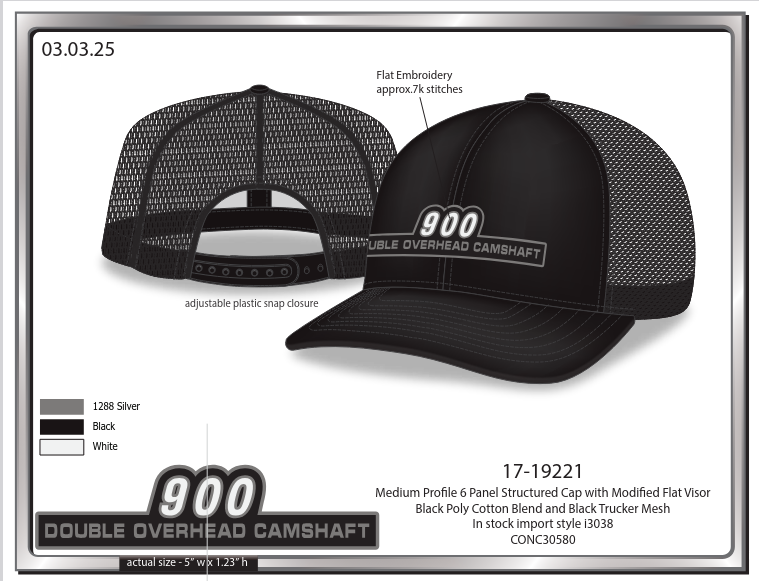 $ TBD. Minimum order from vendor is 48. DK yet if mix & match hat colors/styles can be done. Undecided as yet re: angular '75 900 DOHC badges; may not be enough interest.