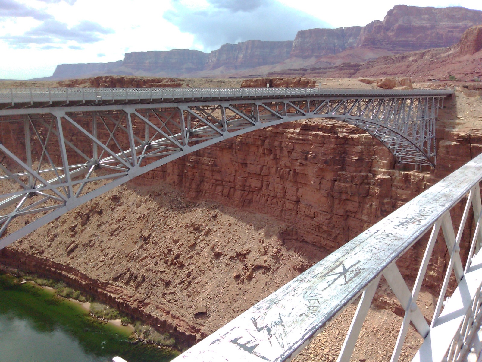 New and old ( Navajo ) bridges on 89 A near Page UT, crossing the Colorado river with the Vermilion Cliffs in the back ground,
