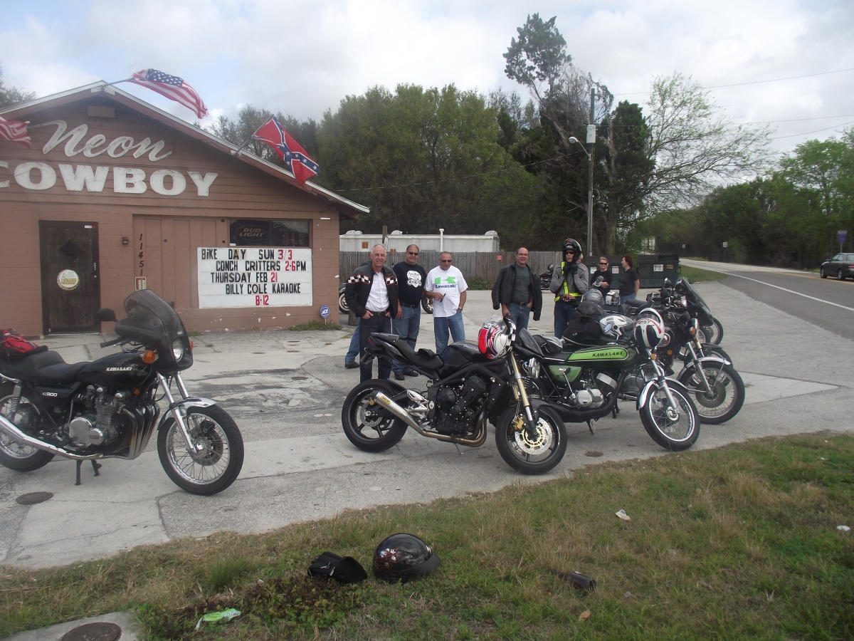 Went for a nice ride today with a new more laid back group to Sleepy Hollow Saloon (posted earlier in this thread). Got to ride some new roads with lots of nice hills. The temps were in the upper seventies. This time around I stayed at the back. The last ride with my cafe group I was trapped mid pack and was forced to keep up pace at high speeds with lots of twisties. Kinda like getting trapped in Conga line :laugh:. This ride had a little spirited riding, but no Kenny Lawson wannabes. At the end of the line we got to enjoy their famous $5.00 (now $6.00) steak lunch. In all it was a good day. Kaw ran flawlessly. Went on reserve for at least 10+ miles. How much should I expect to get on reserve?
