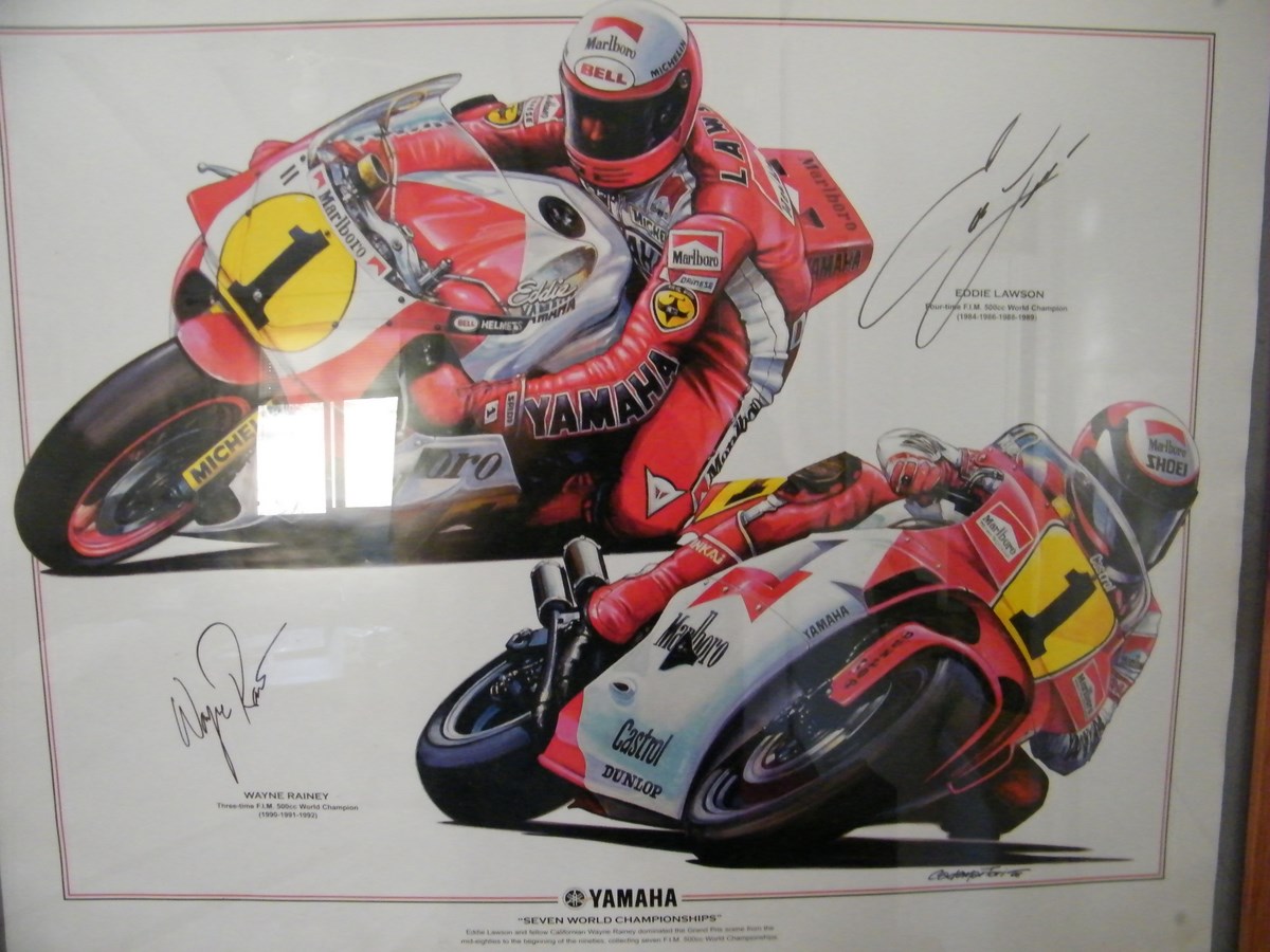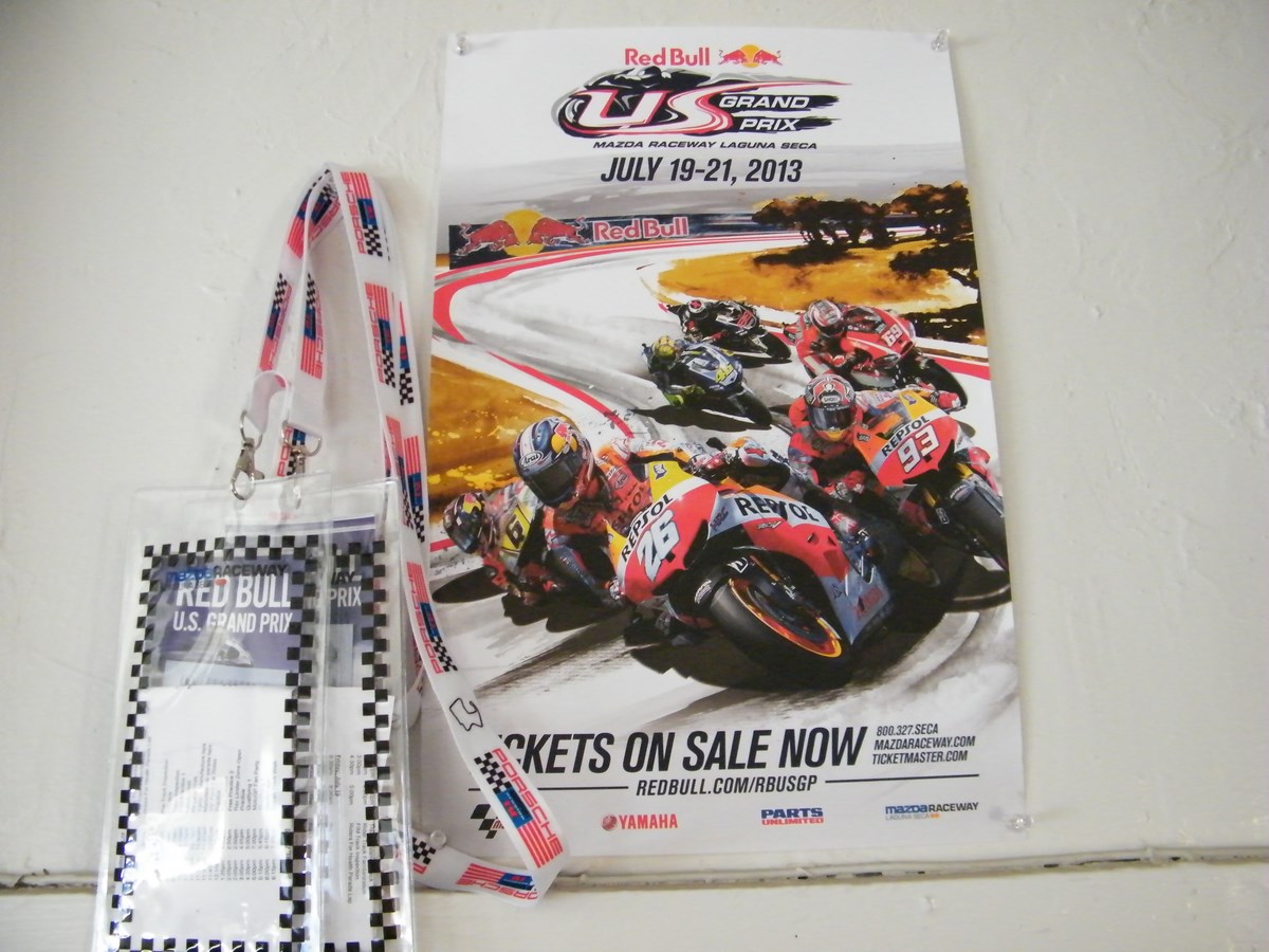 got my new KZR shirt from Trey to wear to the event...new 2013 GP shirt from the track..... new Z1 enterprises shirt.washed and ready to go.... fri/sat/sun shirts covered......bike is beat but runs great...tickets and leashes packed with program and quick flip... helmets waxed ready to rock...maybe get another signed Rainey or Lawson poster...Rossi signed Amy's hat..Cal,Ben,and Colin also signed stuff for her...getting excited here boys...