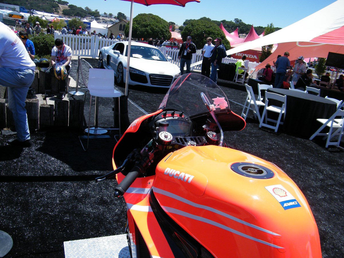 these pics below may be re-posts but I thought they show variety...toady I am going to walk the various bike parking lots which always is good picture stuff...and the pits of the various support classes,corkscrew shots...hot chicks and weird folks....big visor give away today and qualifying as well as bike night where we are headed straight from the track before it gets too full and the stop allowing bikes to ride in and park on cannery row..thanks for the kind words...it really makes it more fun to post if folks enjoy the pics...lot of pics tonight...peace brothers...