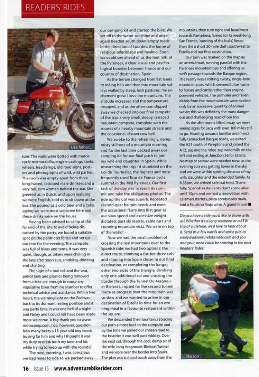 Here is a link to my 1977 Kawasaki Z650 B1 european road trip article, published in issue 15 of Adventure Bike Rider.