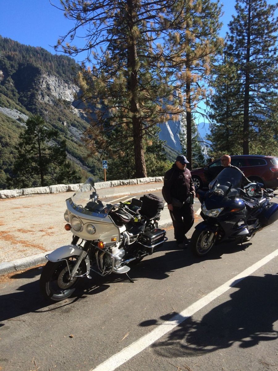 Some friends and I rode from the small community we live iat in the Central Valley to Bridgeport Ca on Saturday. We started out from Reedley. Departure time was 6:30. Stopped for gas and coffee at Oakhurst and then to the south entrance to the park. We stopped again at the big tunnel parking lot where everyone takes pictures.
