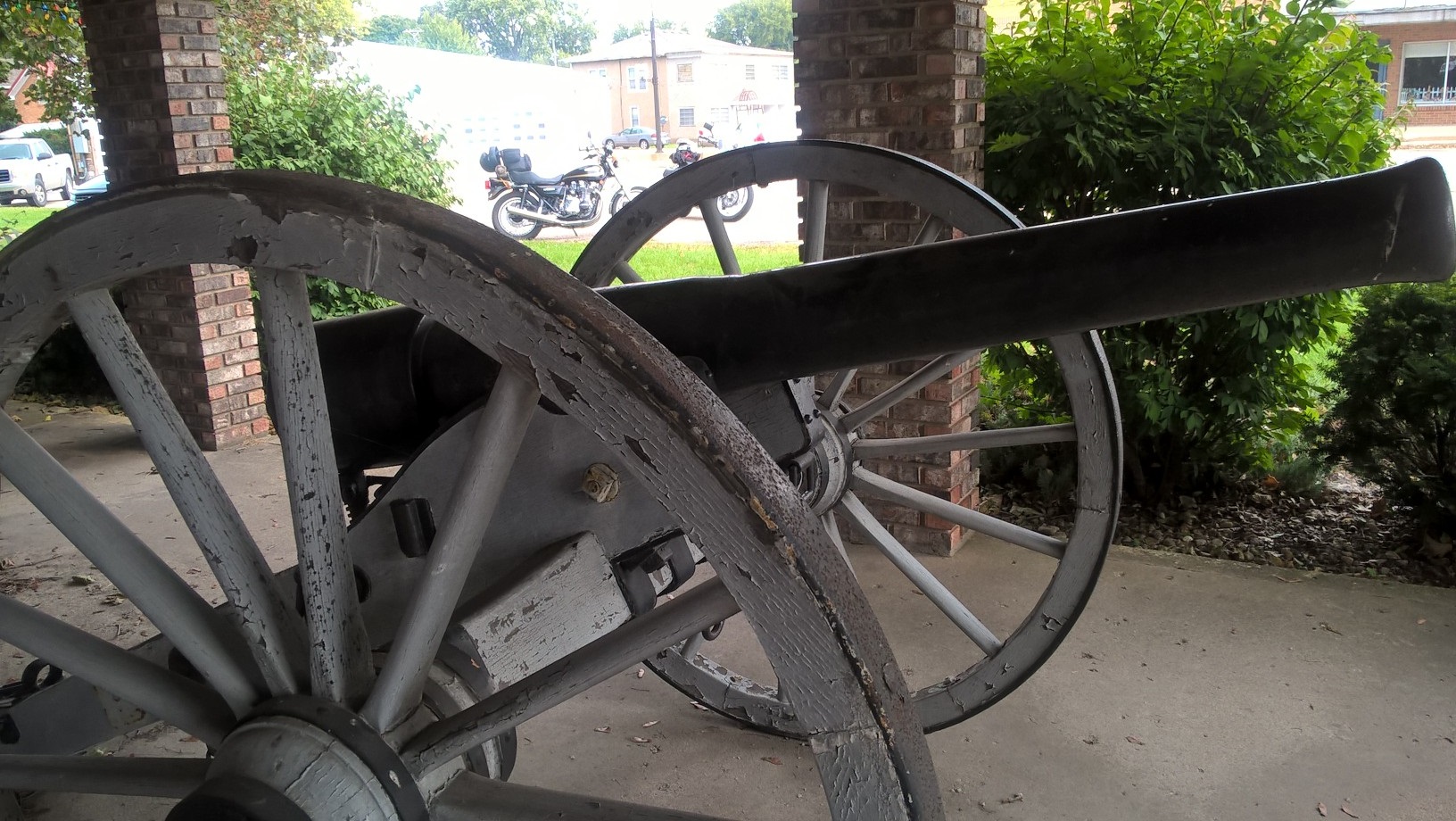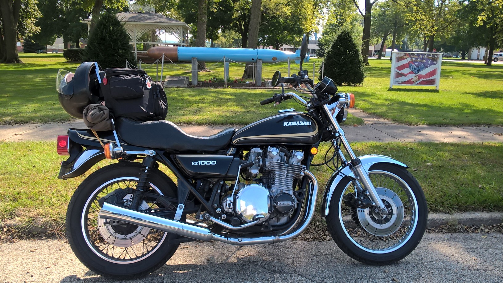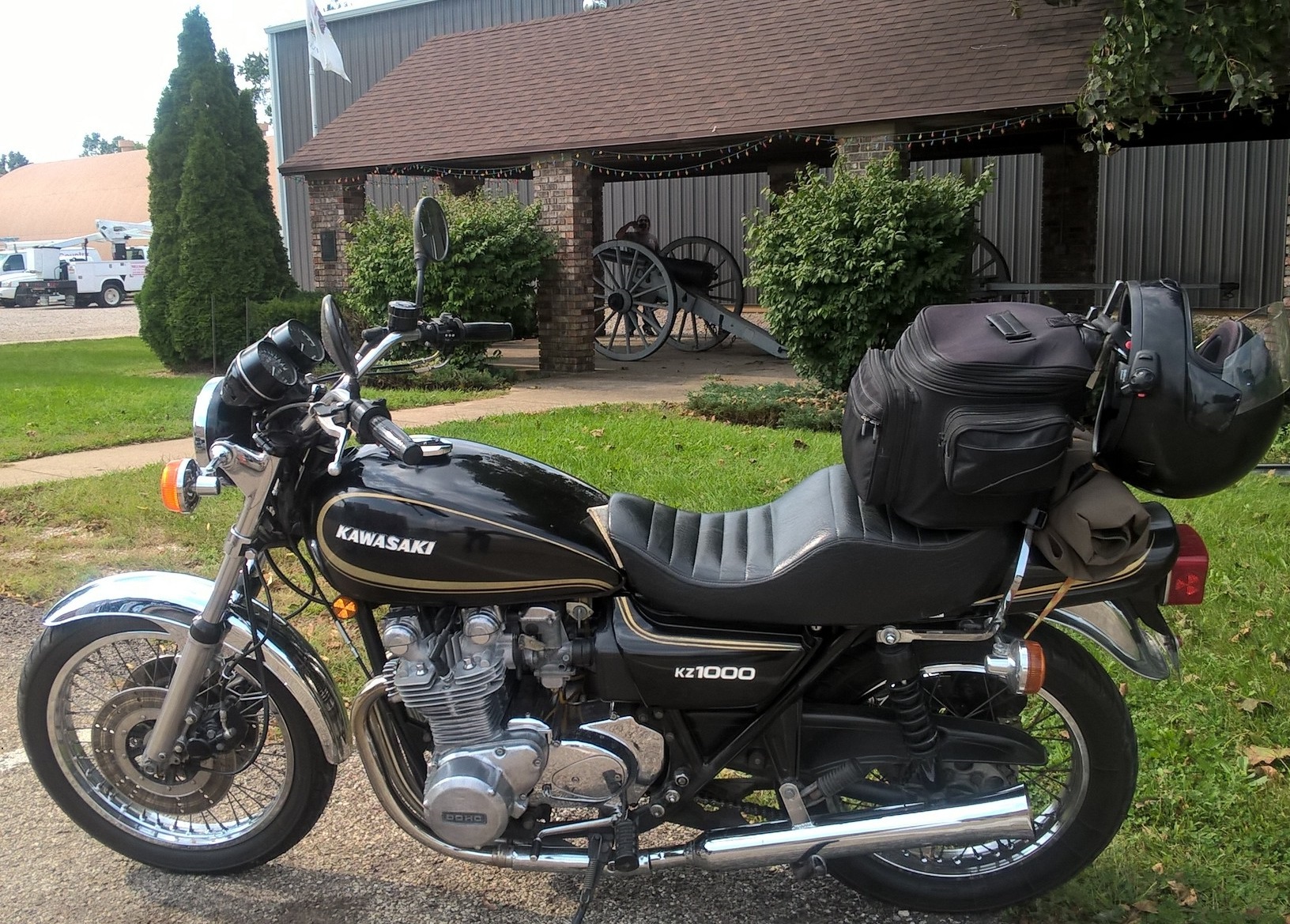 I had to take the KZ out today as part of my shake down runs I'm doing before next week's DGR. So figured I would make it a bit more interesting and get some nice pictures while I'm at it. I am submitting the first entry of a local piece of artillery displayed at the VFW building near town. Please feel free to post your own pictures with your bike.