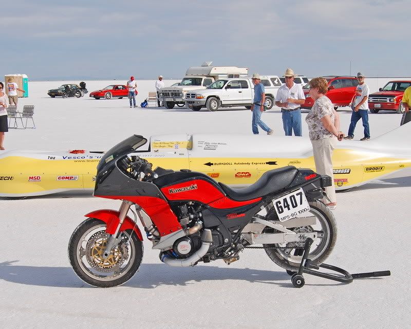If you make it to the salt next year, please look me up. Won't be hard to find. Be the only turbo there! The bike was quite a spectacle. Got so I'd park the thing on the rear stand a few slots up from the chase truck so I wouldn't be besieged with the constant flow of people that surrounded the bike.