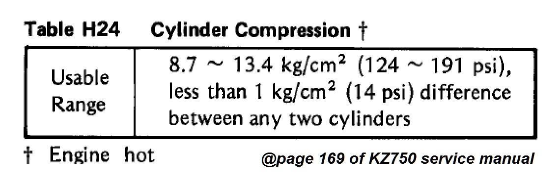 Compression figures are shown on page 169 in the KZ750 manual downloadable via this link: