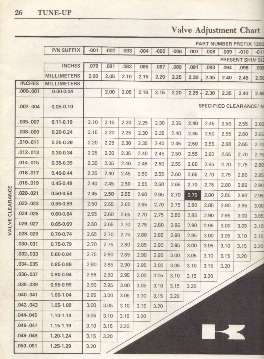 Im pretty sure that .009 off the feeler gauge is 0.229mm or 0.23mm in the left column of chart.