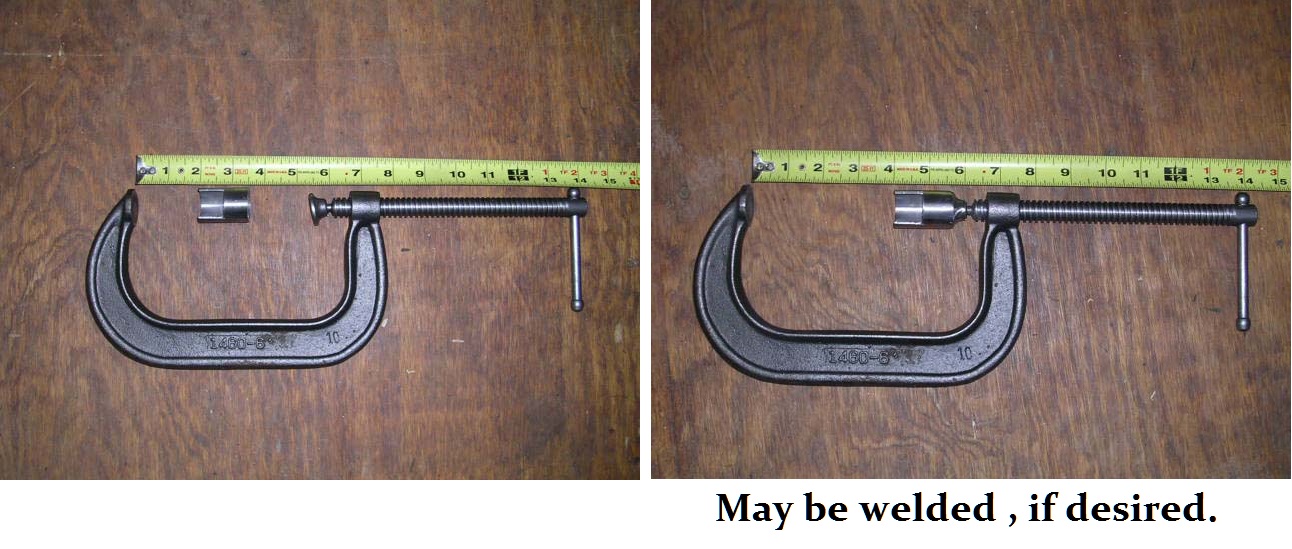 Thanks for the suggestions :] I managed to do it with a cut pvc pipe. The first time around it was expanding when force was applied to it, however I used the bucket itself on top of the pvc pipe to hold it. Just so I put your mind at ease the clamp has plastic at the tips of the rod, so no damage to the bucket.