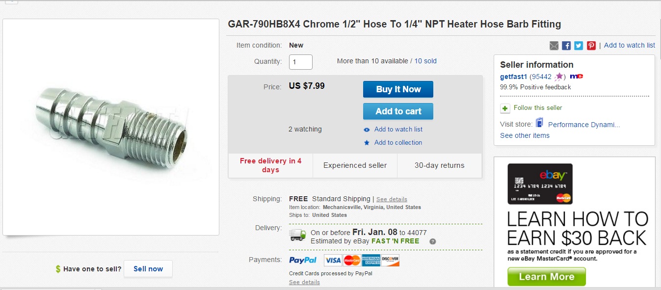 03 Jan 2016 14:28 - 03 Jan 2016 14:38swest wrote: If you'll look further you'll see the 1/4 comes with two different barb sizes, 1/4" and 3/8". The threads and bore are tapered so they will seal themselves. A/C fittings are a whole different animal.