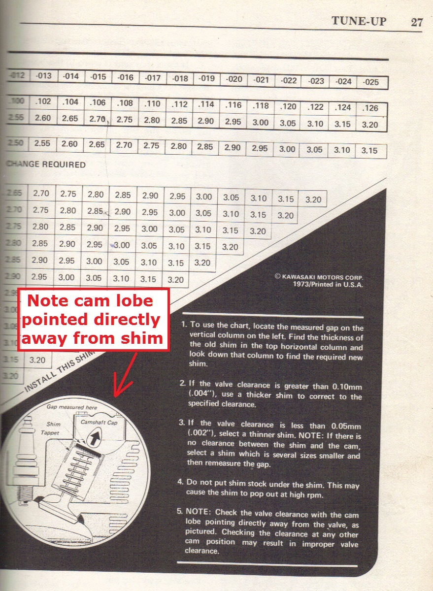 Anyway, thanks Patton, for posting that. Now we have confirmation that Kawasaki, at some point, detailed all three inline-four Kz families to follow the same procedure for valve clearance.