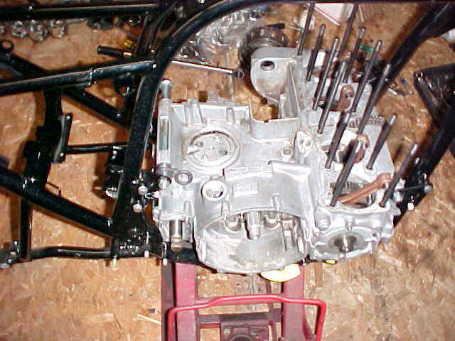finally got a little bit done today. Got the crankshaft, trans and cases put back together. and installed in the frame.